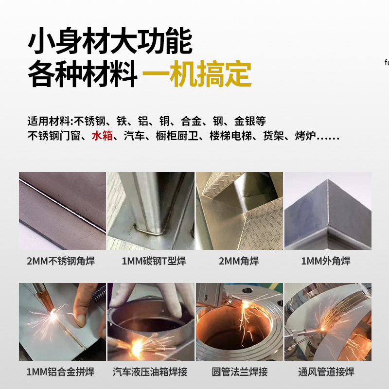 低效率和產(chǎn)品焊接效果不好是眾多廠家面臨的困擾,傳統(tǒng)的焊接設(shè)備價(jià)格低,但焊接效果不好,容易發(fā)黑,達(dá)不到驗(yàn)收標(biāo)準(zhǔn),既不環(huán)保,也無法對(duì)效率有更好的提升。手持式激光焊接機(jī)適用于不銹鋼、碳鋼、銅、鐵、鋁、金、銀、鉻、鈦鎂合金等多種金屬和合金,也可用于多種異種材料間的焊接,很多采用激光焊接的廠家都反饋,激光焊接設(shè)備確實(shí)帶來了效率和效果的雙提升。